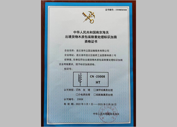 公司廠房占地20余畝,擁有專業(yè)機械設備30套,專業(yè)技術人員50余名。擁有一套現代化的能效高、效果好的熱處理窯,能較好的完成木材的干燥及有害生物的殺滅,已于2007年獲得出境木質包裝標識加施資格,是連云港海關指定定點木包裝熱處理單位。經我公司加工出口的木質包裝年產量20萬套以上,產值1600萬余元。目前是連云港區(qū)域同行業(yè)規(guī)模及產能最大的專業(yè)生產廠家。